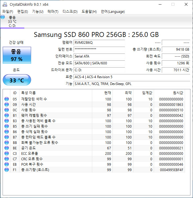 CrystalDiskInfo 9.0.1a - 하드디스크 정보/모니터링