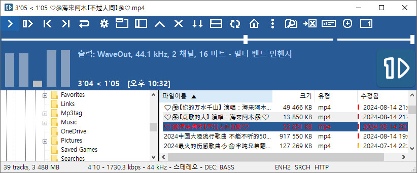 1by1 v2.10 Mp3 디렉토리 플레이어 한글 패치