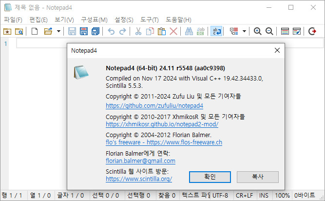 - 한국어 64비트 포터블: Notepad4_ko_x64_v24.11r5548.zip