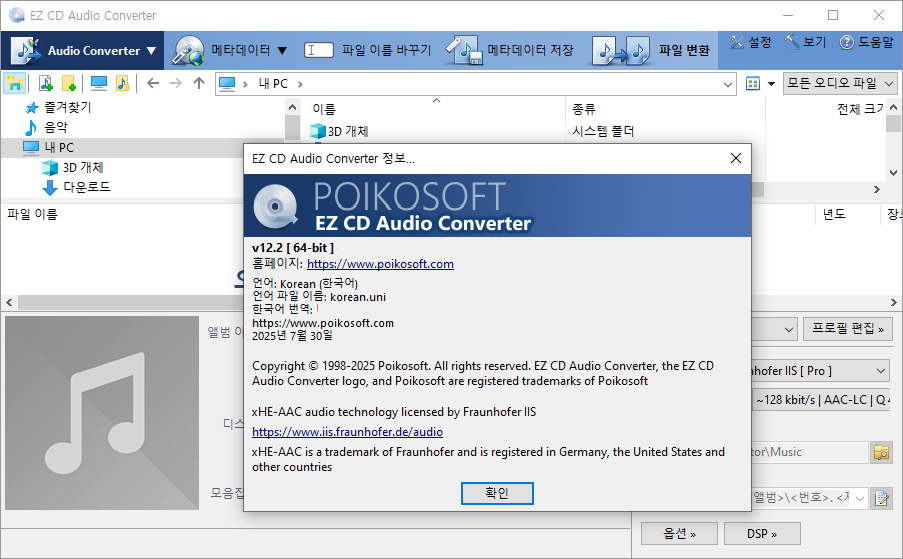 EZ CD 오디오 컨버터는 모든 음악 파일 변환에 최고 품질의 오디오 품질을 제공합니다. 최첨단 64비트 오디오 엔진과 고정밀 샘플링 변환기를 탑재해 모든 변환에서 완벽한 전문적 품질의 사운드를 보장합니다. 60+ 이상의 오디오 포맷을 지원하여, 최고의 오디오 품질로 음악 컬렉션을 손쉽게 변환, 관리하고 즐길 수 있습니다.